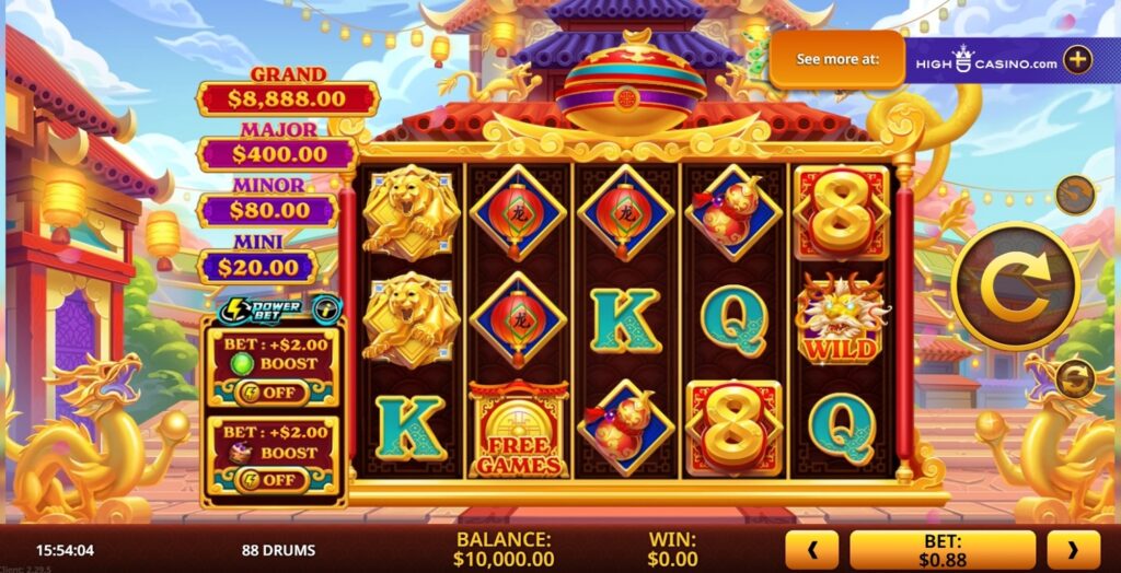 Det Asian-inspirerte designet og den solide tekniske utførelsen fra High 5 Games gjør 88 Drums til en underholdende og engasjerende spillopplevelse. Den brede innsatsstrukturen fra $0.22 – $110 sikrer at spillet er tilgjengelig uavhengig av budsjett.