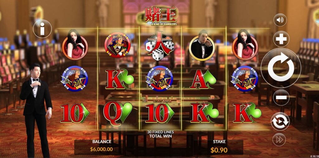 A King of Gamblers er en Jackpot-spill fra Maverick med et 5x3 oppsett og 30 gevinstlinjer.