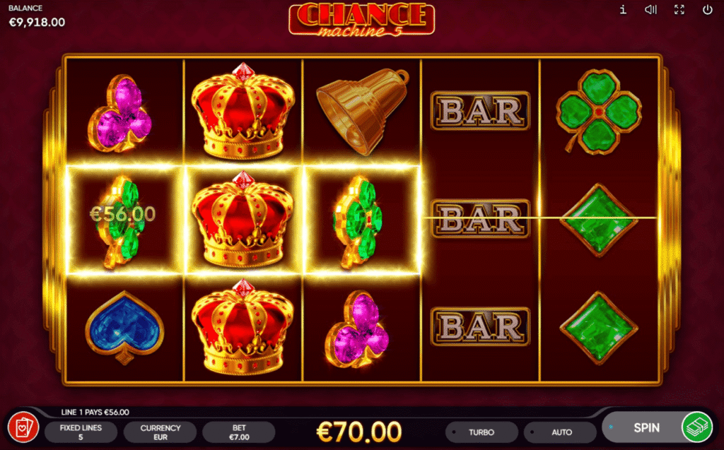 Det gjennomførte designet og den solide tekniske utførelsen fra Endorphina gjør Chance Machine 5 til en underholdende og engasjerende spillopplevelse. Det fleksible innsatsområdet sikrer at spillet er tilgjengelig uavhengig av budsjett.