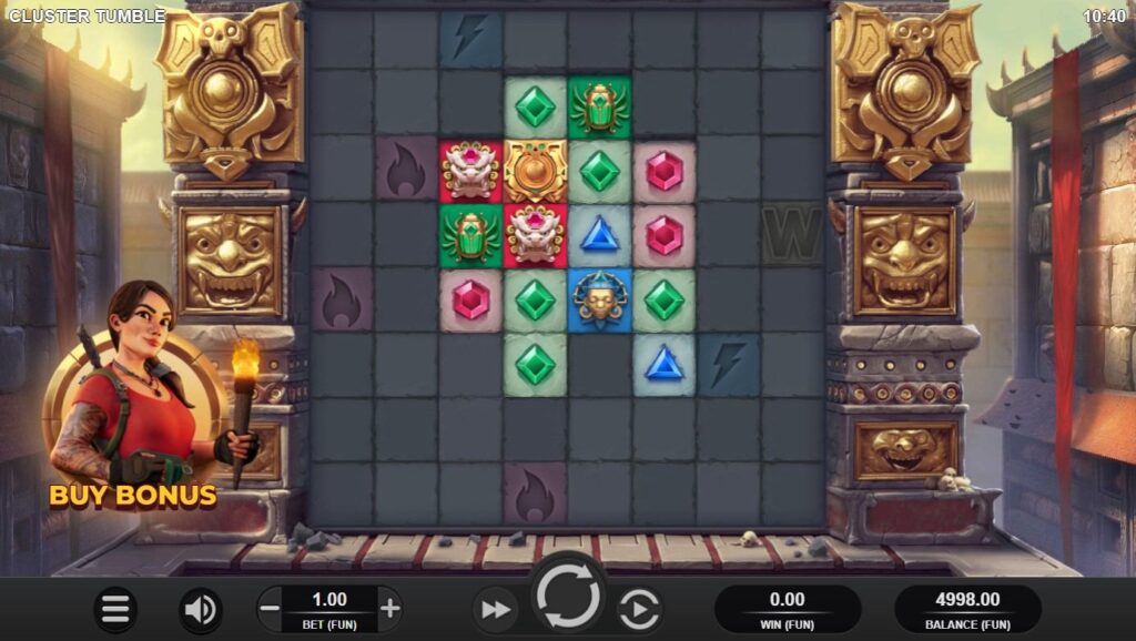 Innsatsområdet i Cluster Tumble strekker seg fra $0.1 – $50, noe som gir stor fleksibilitet for spillere med ulike budsjetter. De lave minimumsinnsatsene gjør spillet ideelt for fritidsspillere og de som ønsker å strekke spillbudsjettet sitt over lengre økter. Samtidig gir de høyere innsatsnivåene mer erfarne spillere muligheten til å jakte på potensielt større absolutte gevinster.