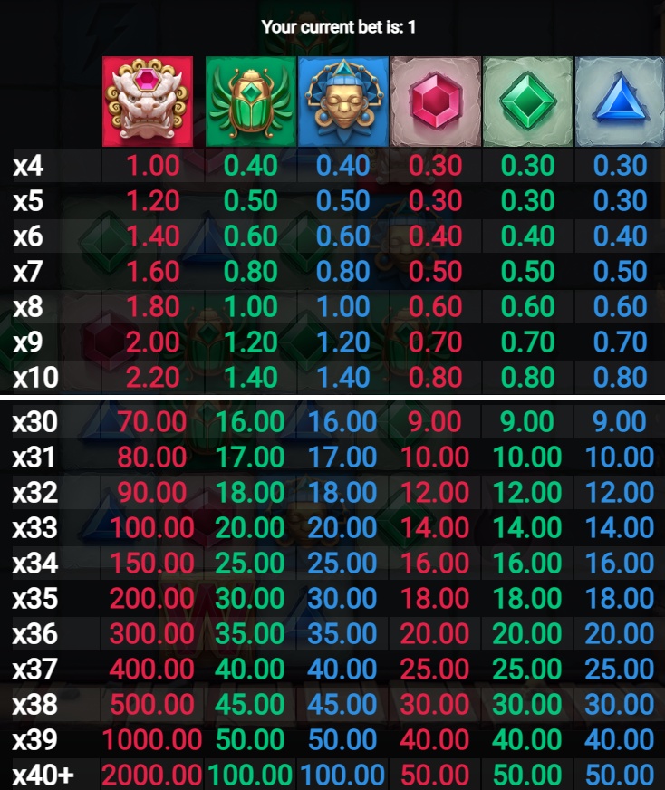 Symbolhierarkiet i Cluster Tumble er nøye balansert for å skape en engasjerende spillopplevelse. De tematiske høyverdisymbolene reflekterer Aztecs-temaet og tilbyr de mest lukrative utbetalingene i hovedspillet. Fem identiske høyverdisymboler på en aktiv gevinstlinje gir typisk de største standardgevinstene, mens fire og tre av samme symbol gir proporsjonalt lavere, men fortsatt tilfredsstillende utbetalinger.