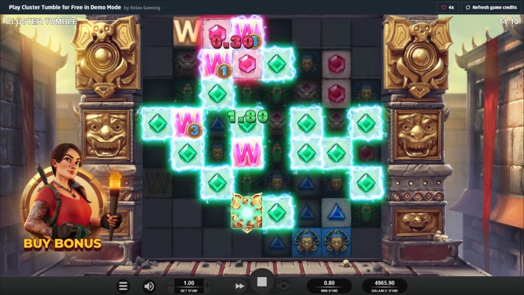 Cluster Tumble byr på spennende bonusfunksjoner som tilfører dybde og spenning til spillopplevelsen. Funksjonene inkluderer free spins, som alle bidrar til å holde engasjementet oppe gjennom spilløkten.