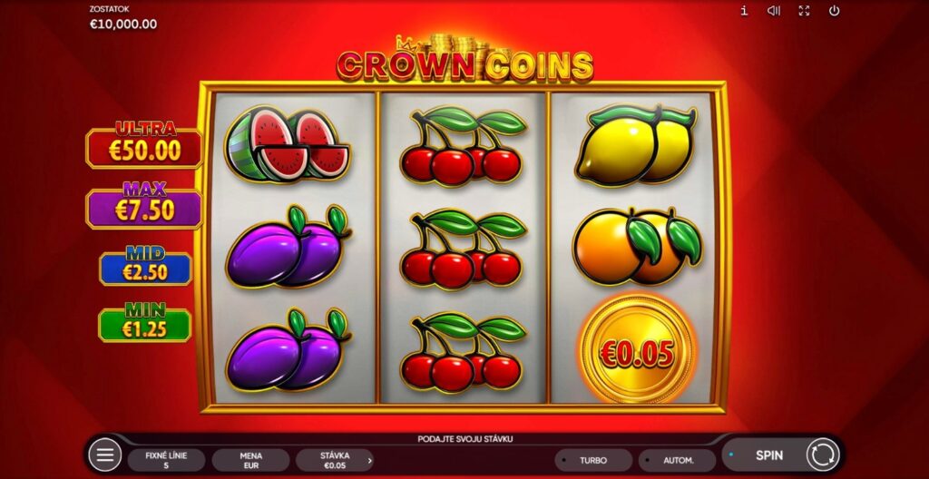 Det Fruits-inspirerte designet og den solide tekniske utførelsen fra Endorphina gjør Crown Coins til en fornøyelig og potensielt lukrativ spillopplevelse. Den brede innsatsstrukturen fra $0.05 – $80 sikrer at spillet er tilgjengelig uavhengig av budsjett.