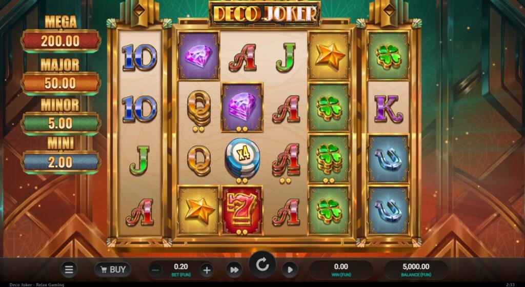 Deco Joker er en Jackpot-spill fra Relax Gaming med et 6x4 oppsett og N/A gevinstlinjer.