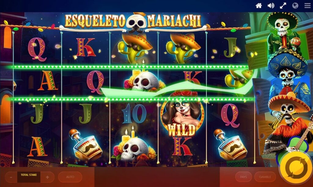 Esqueleto Mariachi er en Jackpot-spill fra Red Tiger Gaming med et 5x4 oppsett og 40 gevinstlinjer.