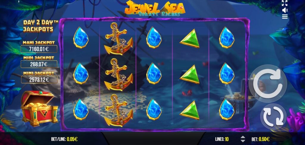 Jewel Sea Pirate Riches inkluderer en progressiv jackpotfunksjon som gjør hvert spinn potensielt livsforandrende. Jackpotbeløpet vokser kontinuerlig inntil det utløses av en heldig spiller, og kan nå betydelige summer. Denne funksjonen legger til et ekstra lag av spenning og forventning til hver eneste spillrunde.
