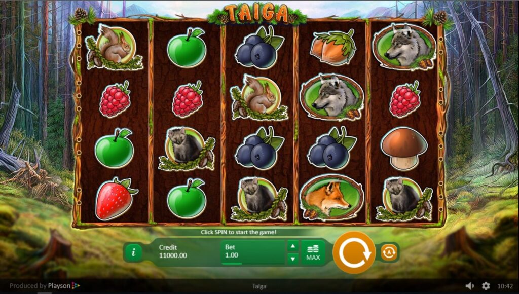 Taiga er en Jackpot-spill fra Playson og N/A gevinstlinjer.